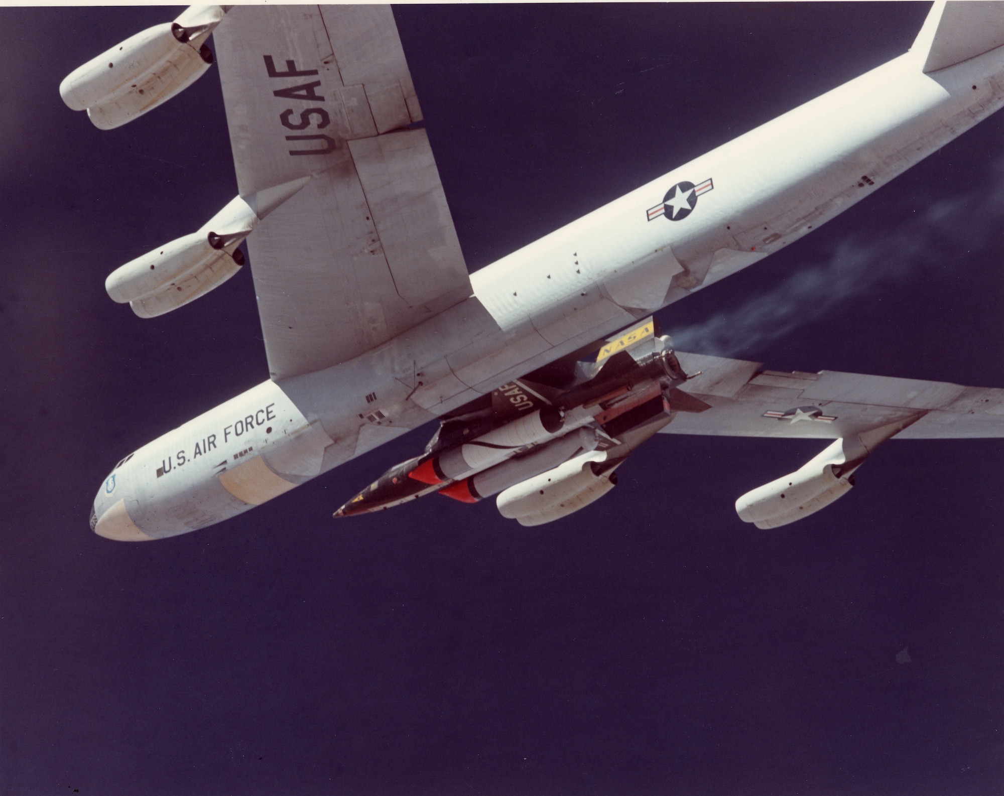 Like other rocket planes, the X-15 was launched in midair from a B-52 “mothership” at about 45,000 feet. Once its powerful rocket ignited, the X-15 streaked upward to the limits of the atmosphere, then glided unpowered to land on a dry lake bed. Typical flights lasted about 10 minutes.